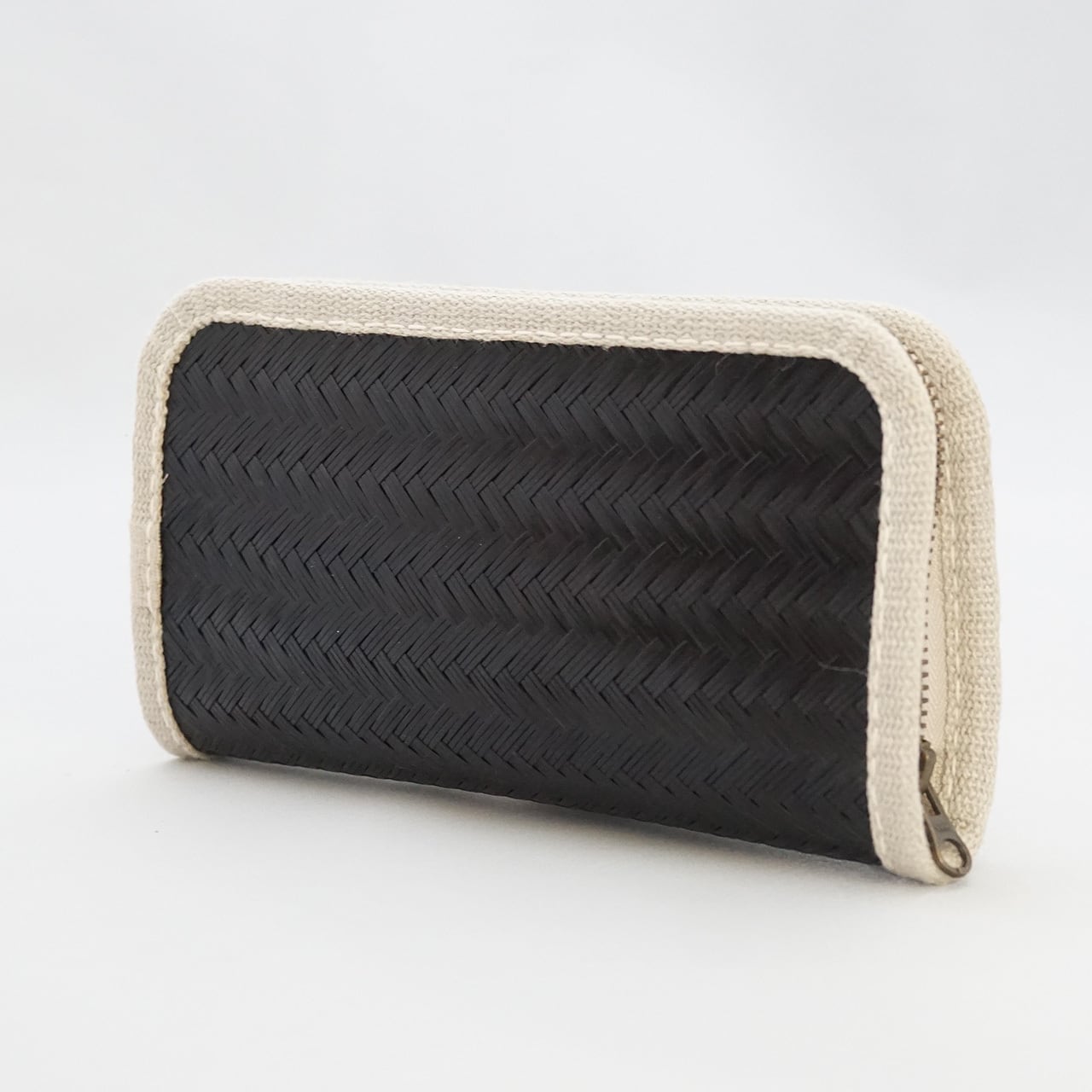 竹と麻の財布・大 三本寄せ網代漆仕上げ・黒