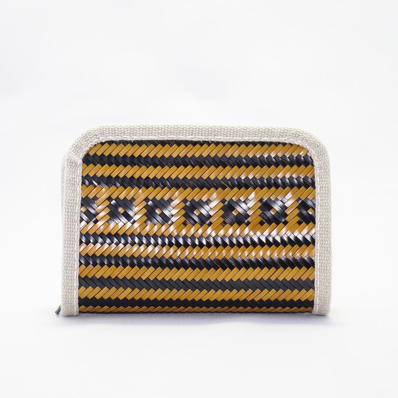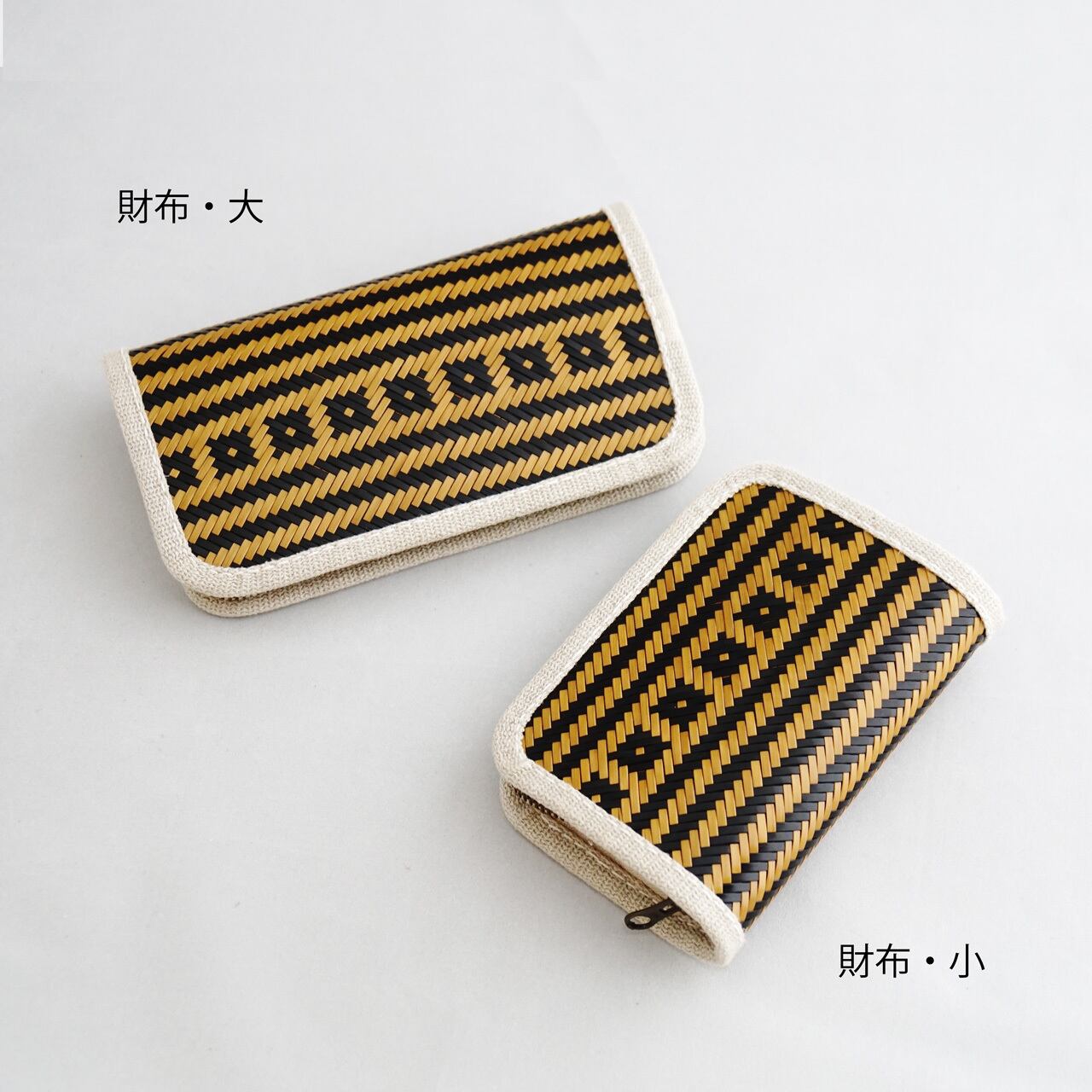 竹と麻の財布・小 桝網代交色白黒漆仕上げ